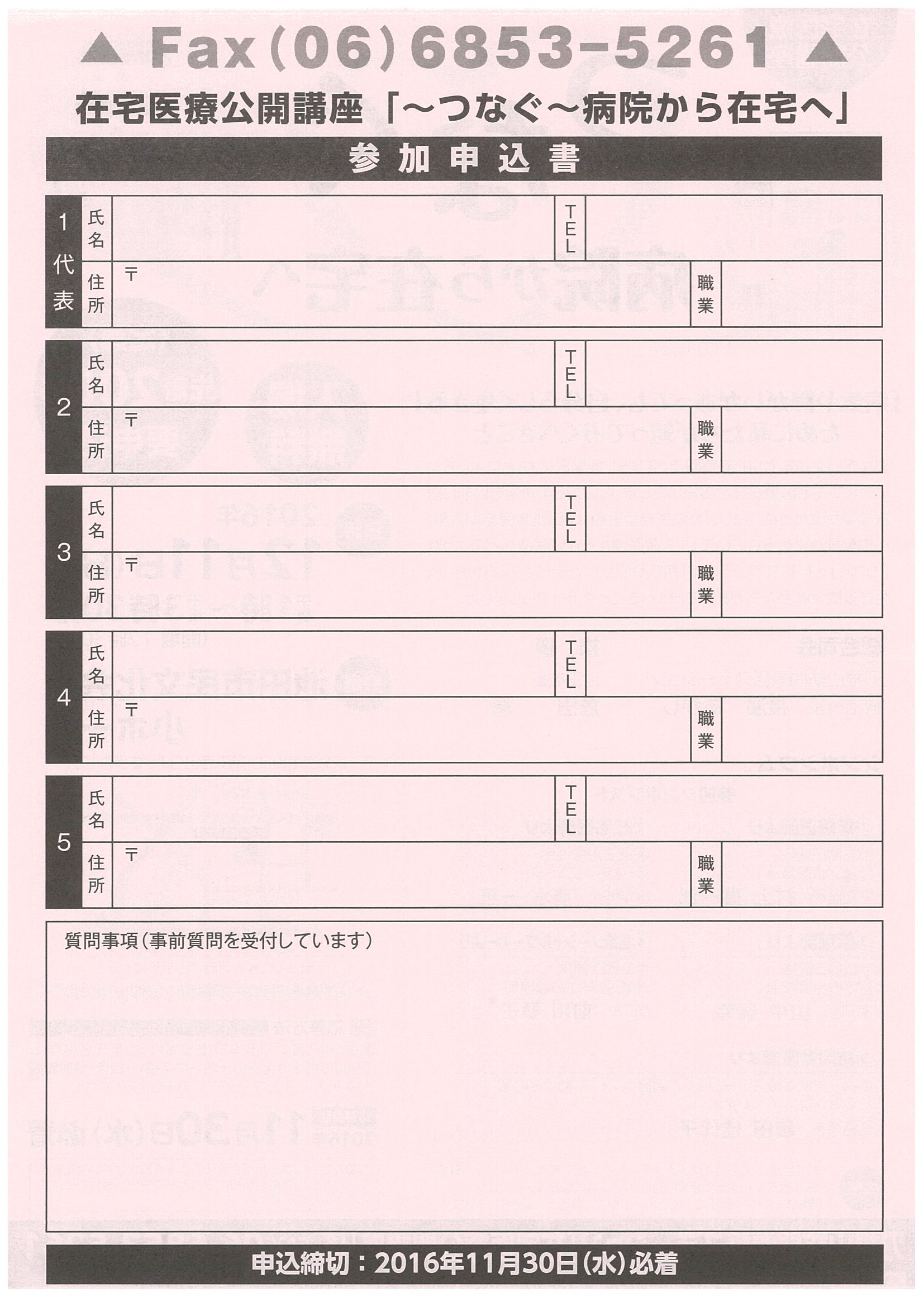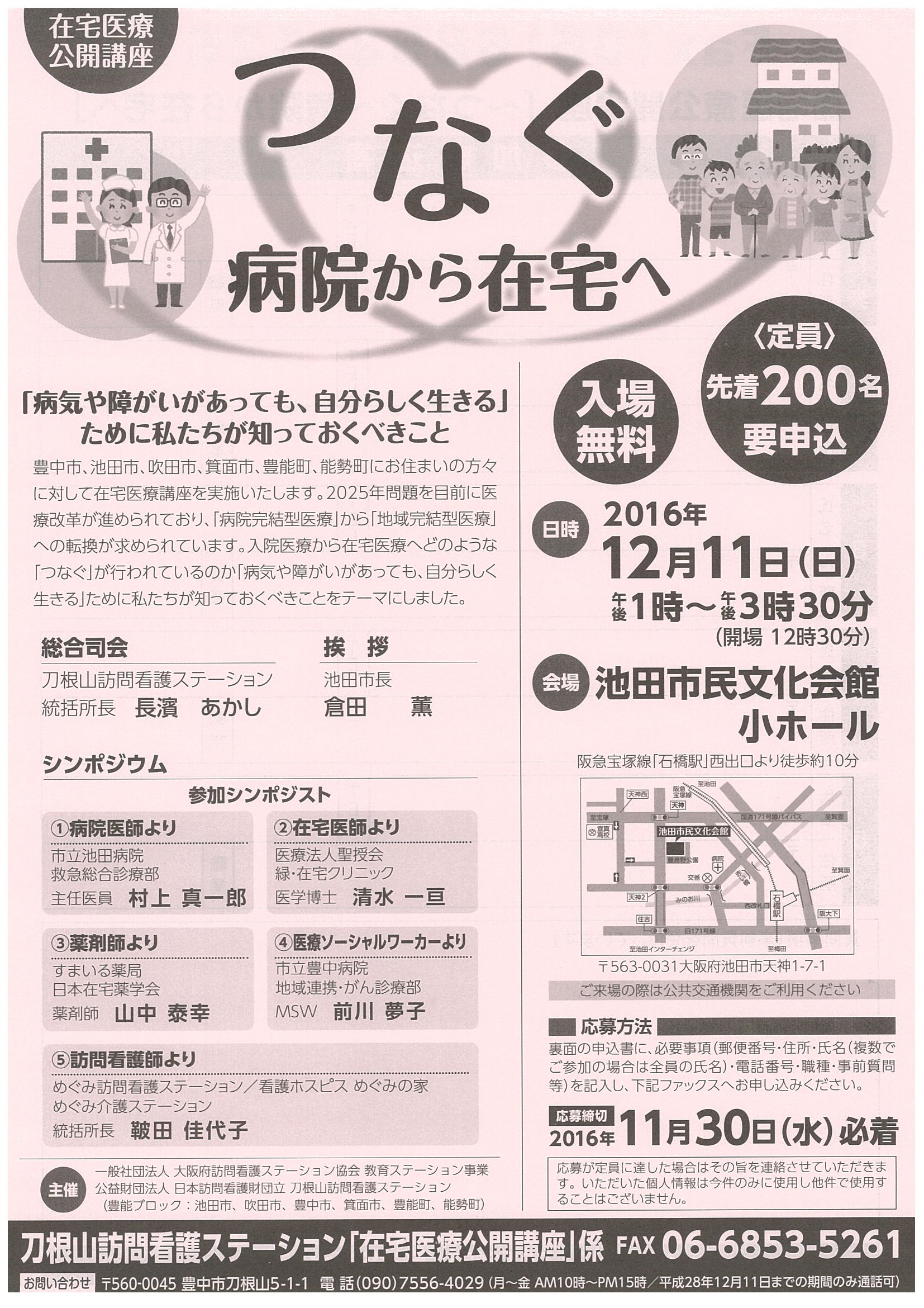 在宅医療公開講座「つなぐ~病院から在宅へ~」が開催されます。